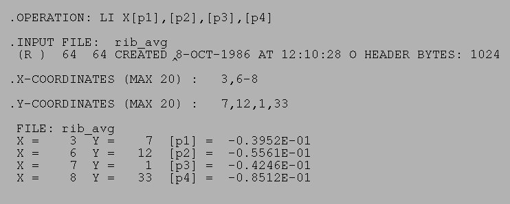 | .OPERATION: | LI X [p1],[p2],[p3],[p4] | ; List image values in register variables |